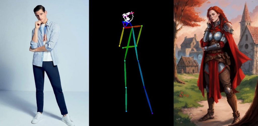 Another very useful model for Controlnet is Openpose. This model allows us to extract the pose from a reference image and then work with our prompt to obtain our result.